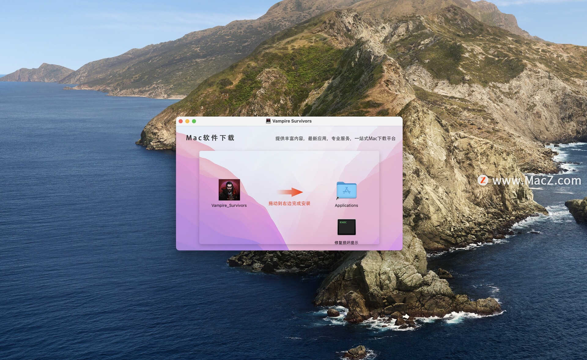 本站下载完成后,将左侧软件拖动到右侧应用程序即可