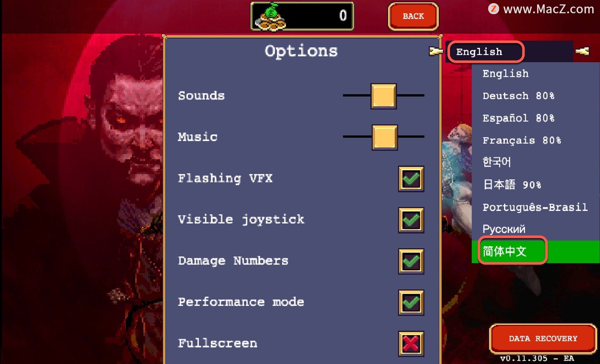 打开游戏,点击OPTIONS语言选择简体中文即可