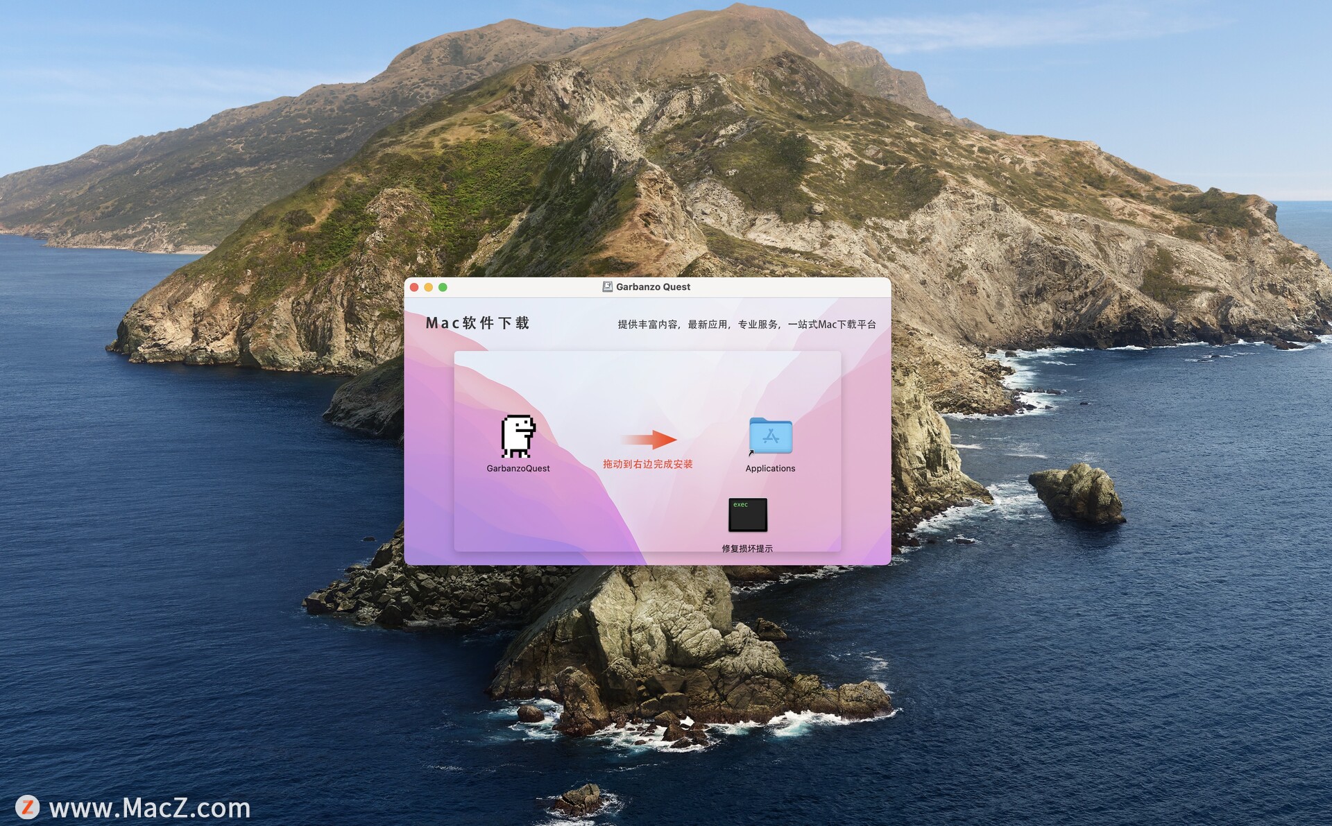 将左侧的Garbanzo Quest拖动到右侧的应用程序中即可,如图