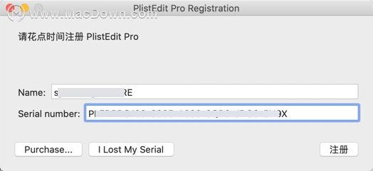 将PlistEdit Pro注册码复制粘贴到注册界面,然后点击【注册】。
