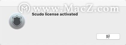运行软件Scudo,点击菜单栏上的软件图标,选择“关于Scudo”