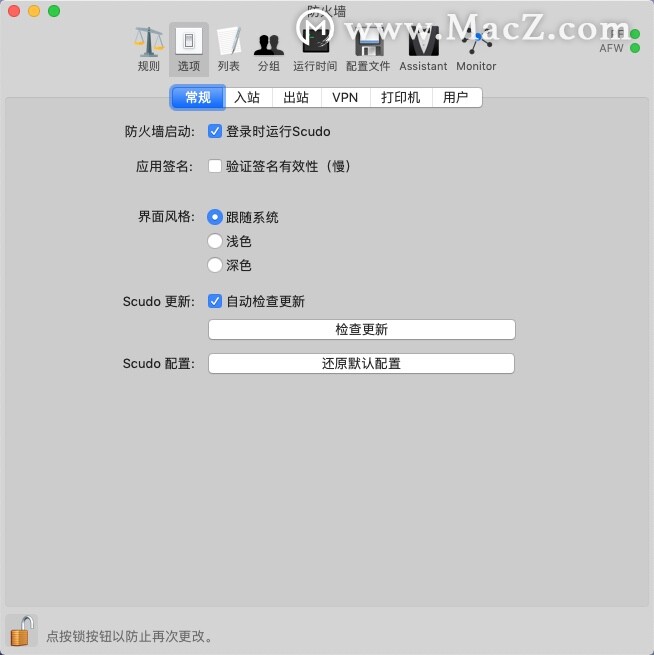 Mac哪款防火墙工具好用呢?Scudo mac版是一款运行在MacOS平台上的混合防火墙工具。Scudo结合了入站网络层包过滤器和出站应用程序层防火墙。帮助保护您的Mac网络服务免受来自远程计算机的不必要连接,并改善安全控制所有应用程序的网络活动。