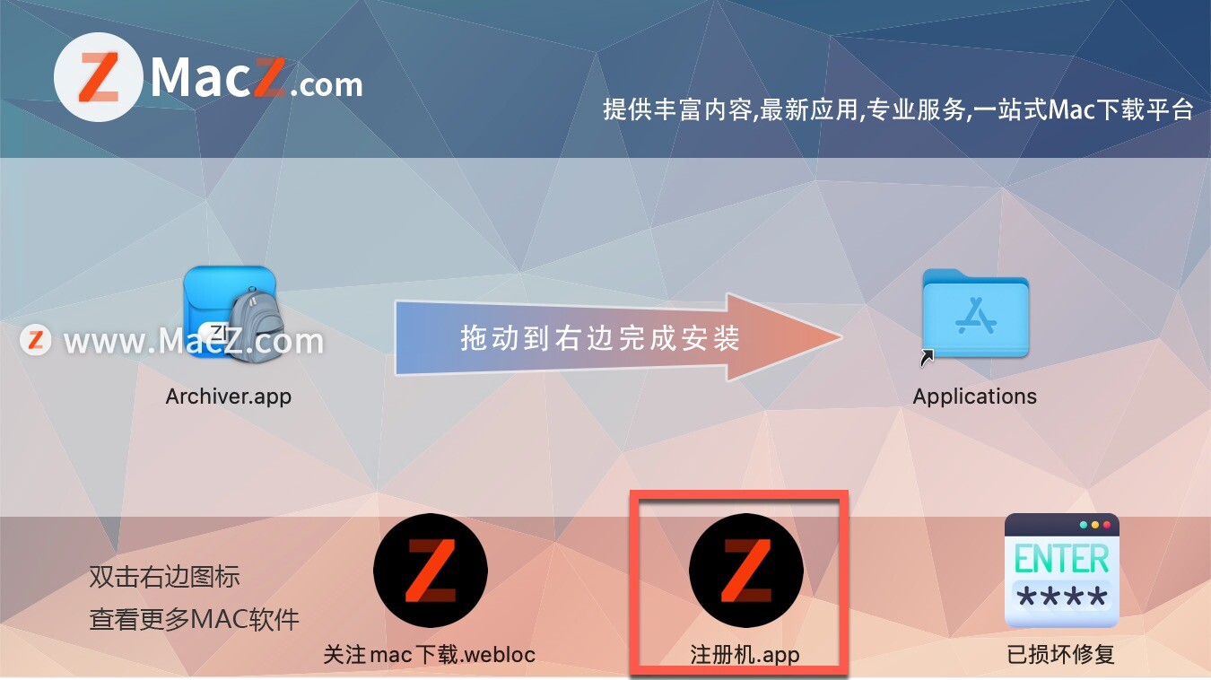 将左侧的Archiver拖至右侧应用程序安装,如下图。