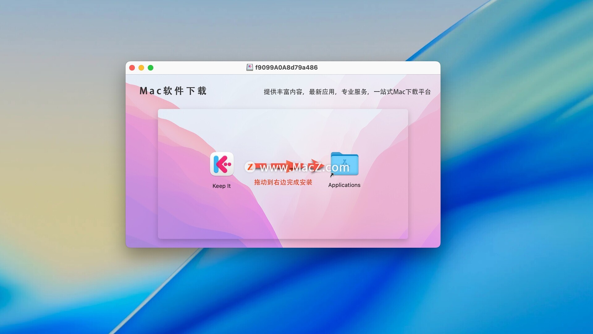需要关闭sip安装包下载完成后,拖动左侧的Keep It到右侧应用程序中即可