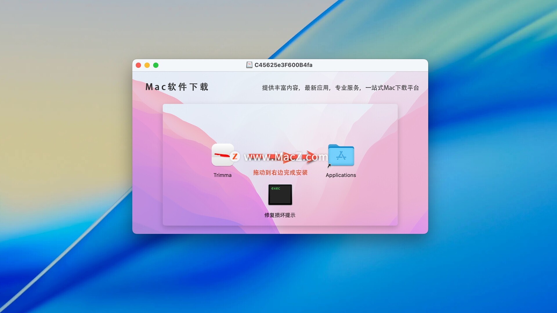 安装包下载完成后打开,拖动左侧的Trimma