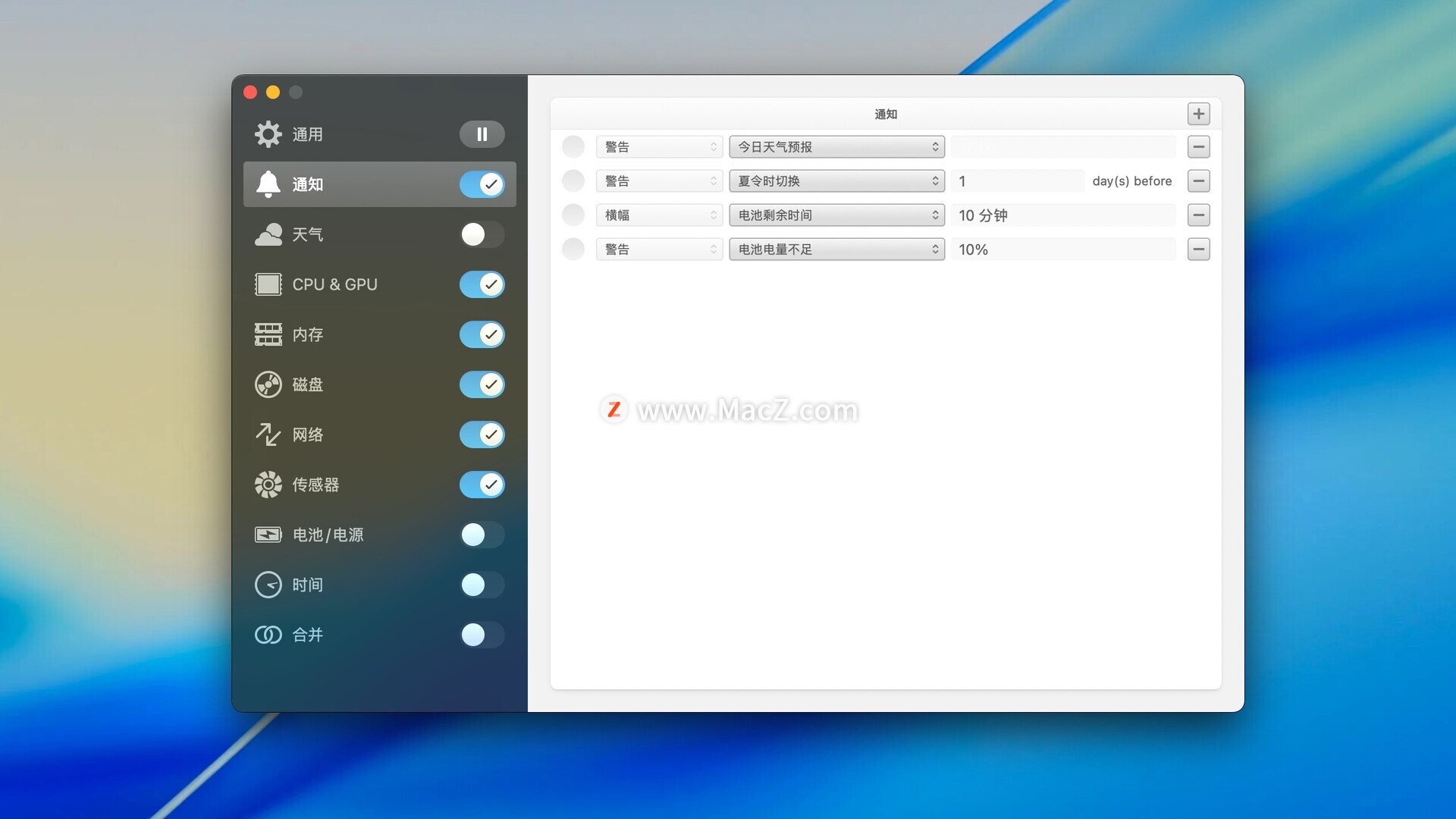 基于CPU,GPU,内存,磁盘,网络,传感器,电池,电量和天气,iStat菜单可以通知您一系列令人难以置信的事件。这可以让您在公共IP发生更改,互联网连接断开,CPU使用率超过60%超过10秒或其他选项范围接近无限时通知您。它甚至可以让你知道当天的天气,或者提醒你夏时制的变化。