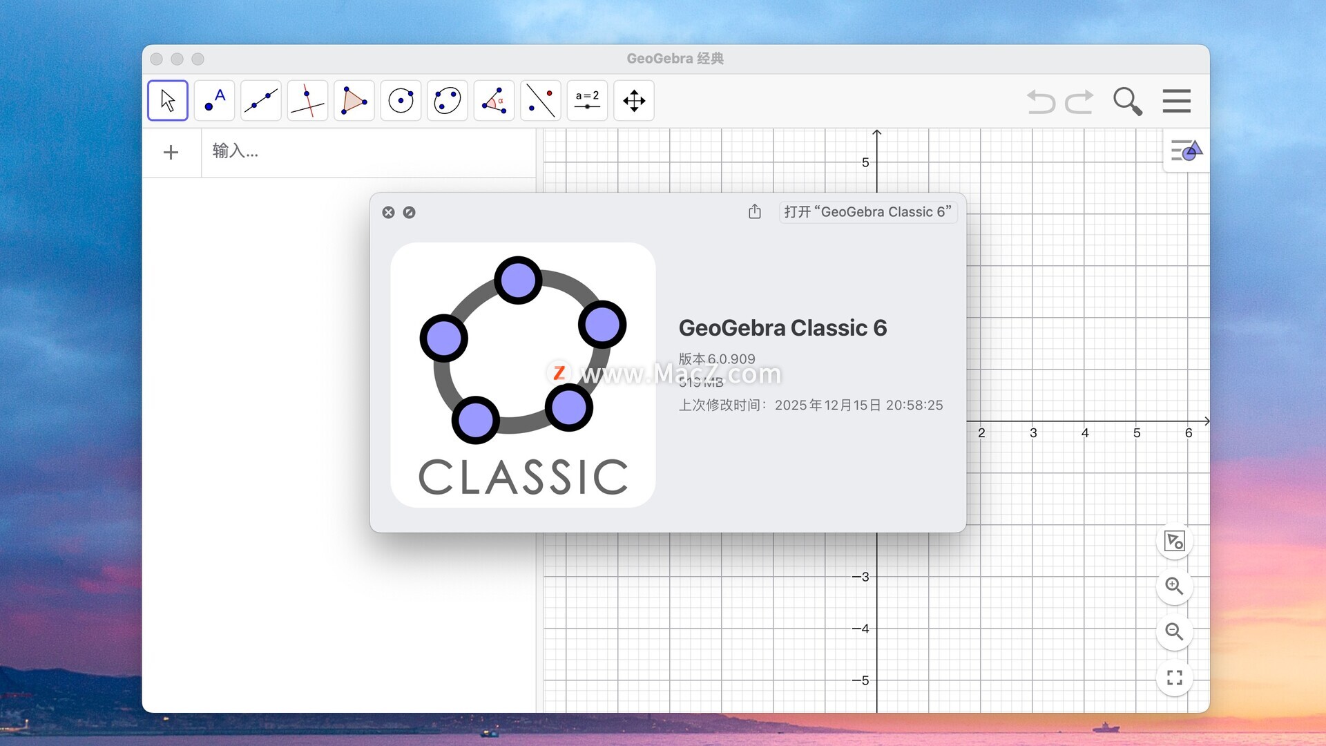 GeoGebra Classic 6 for Mac是一款具有动态几何功能的数学教育软件,具有以下功能特点: