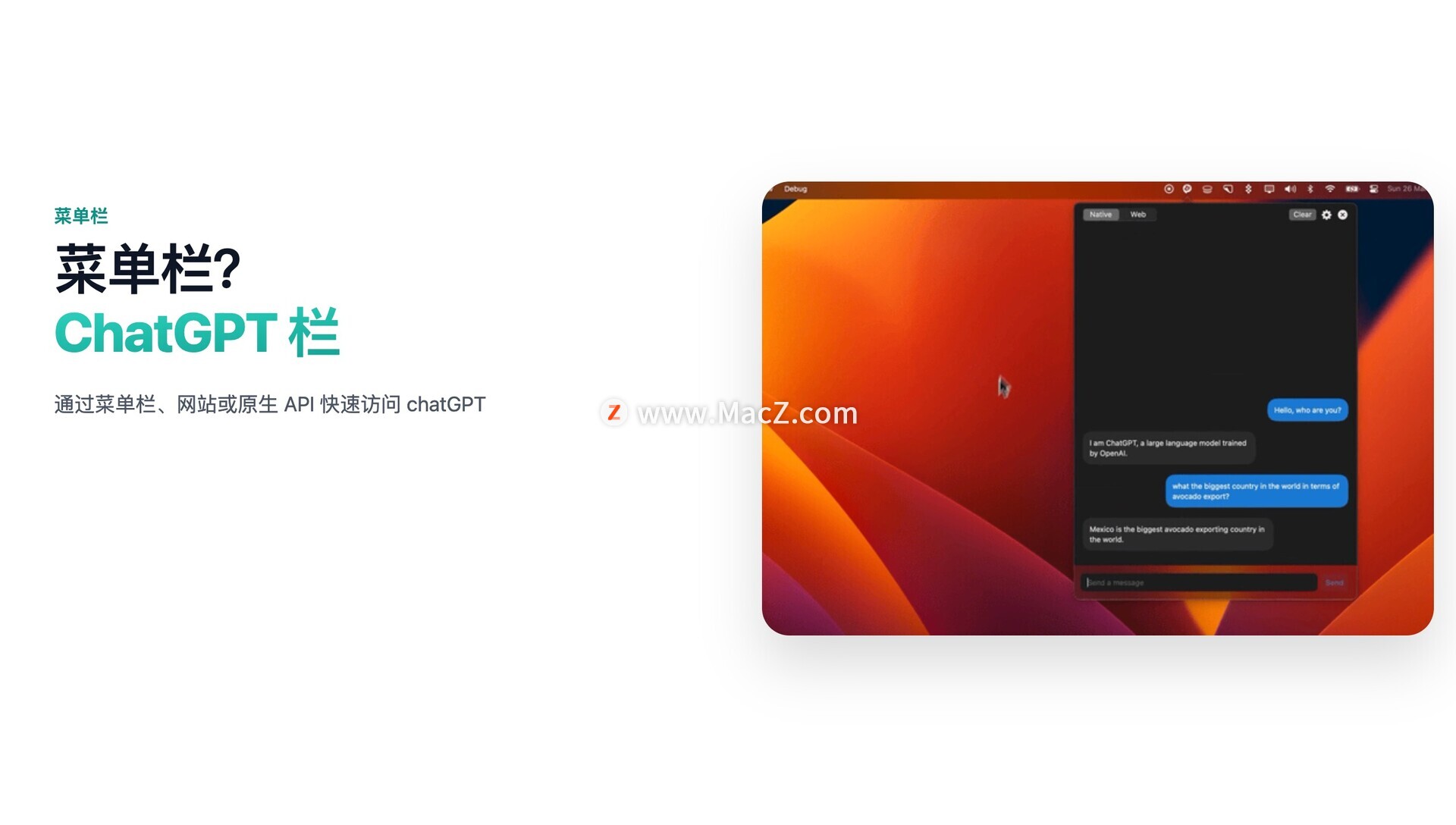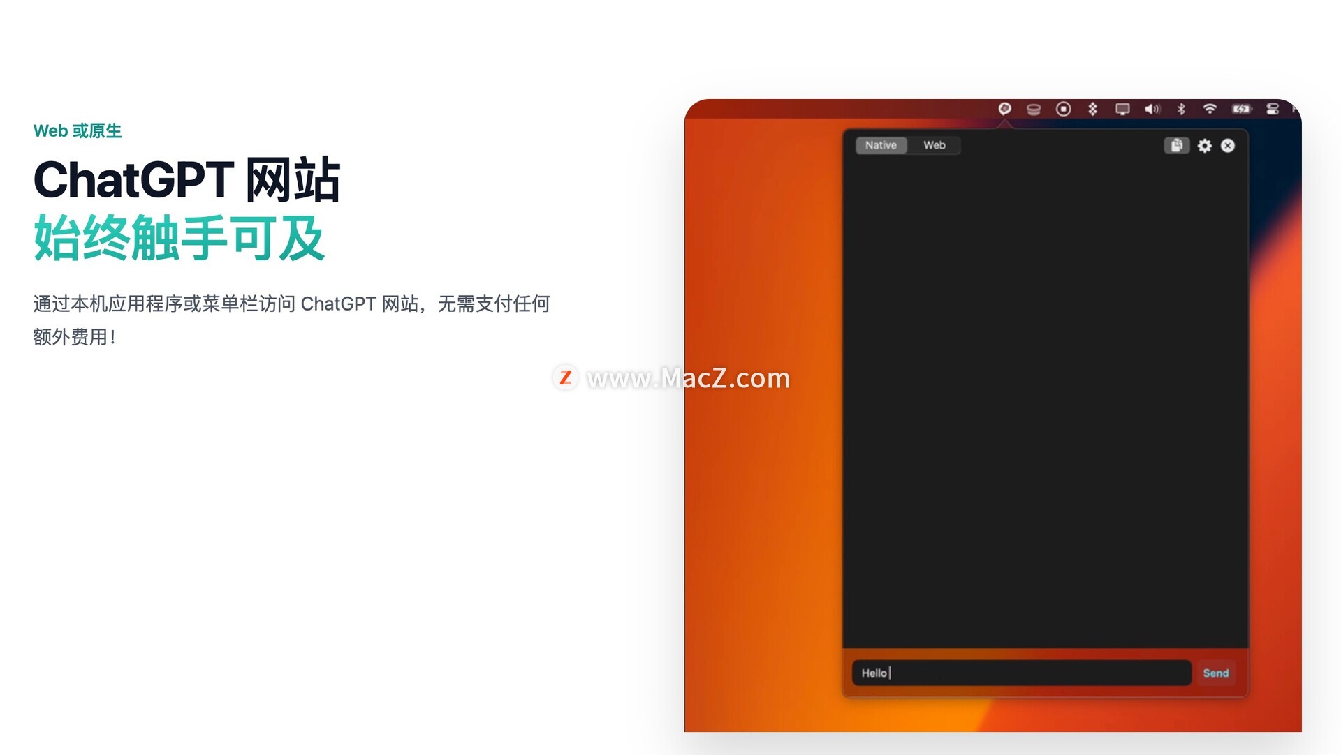 - 菜单栏快速调出:MacGPT可以放置在菜单栏,用户只需点击相应的图标,即可快速调出ChatGPT界面,无需繁琐的搜索或打开操作。