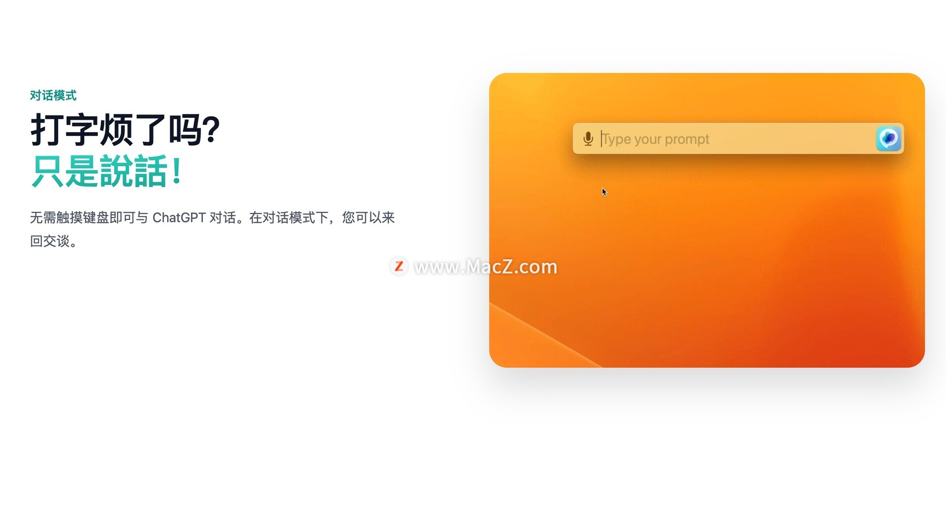 - 语音输入支持:除了传统的文字输入方式,MacGPT还支持语音输入,用户可以直接通过语音与ChatGPT进行交流,提高使用便捷性。