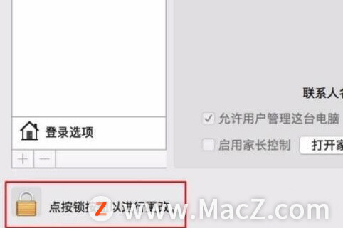 3、进入用户与群组的窗口,点击左下角的“锁”图标进行解锁;