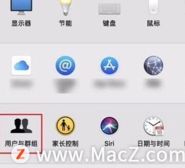 2、兼容系统偏好设置界面,点击“用户与群组”;